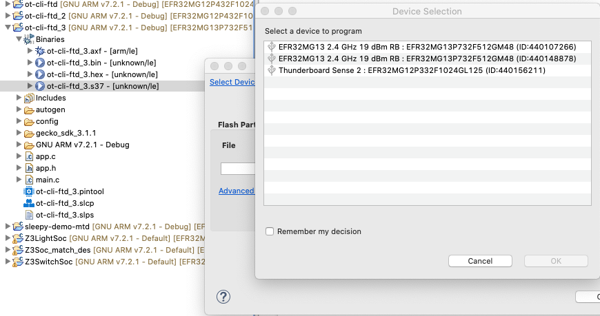 我们将创建两个项目。用于 BRD4166A 的 ot-rcp 项目和用于两个 BRD4168A 的 ot-cli-ftd 项目。请按照下列步骤操作,并为您的主板选择适当的示例应用。